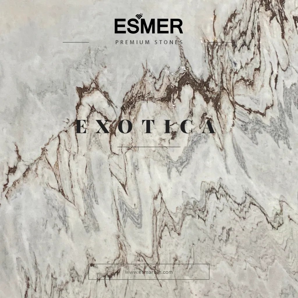 An eye-catching natural stone with dark contrast veins and different selections on a light background: Exotica. This marble, which offers an artistic touch in wall and floor coverings, is used in distinguished projects. Please contact us for more information about this product, which offers an exotic atmosphere.